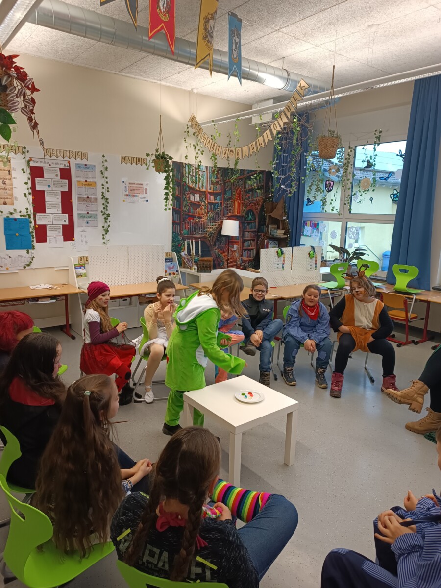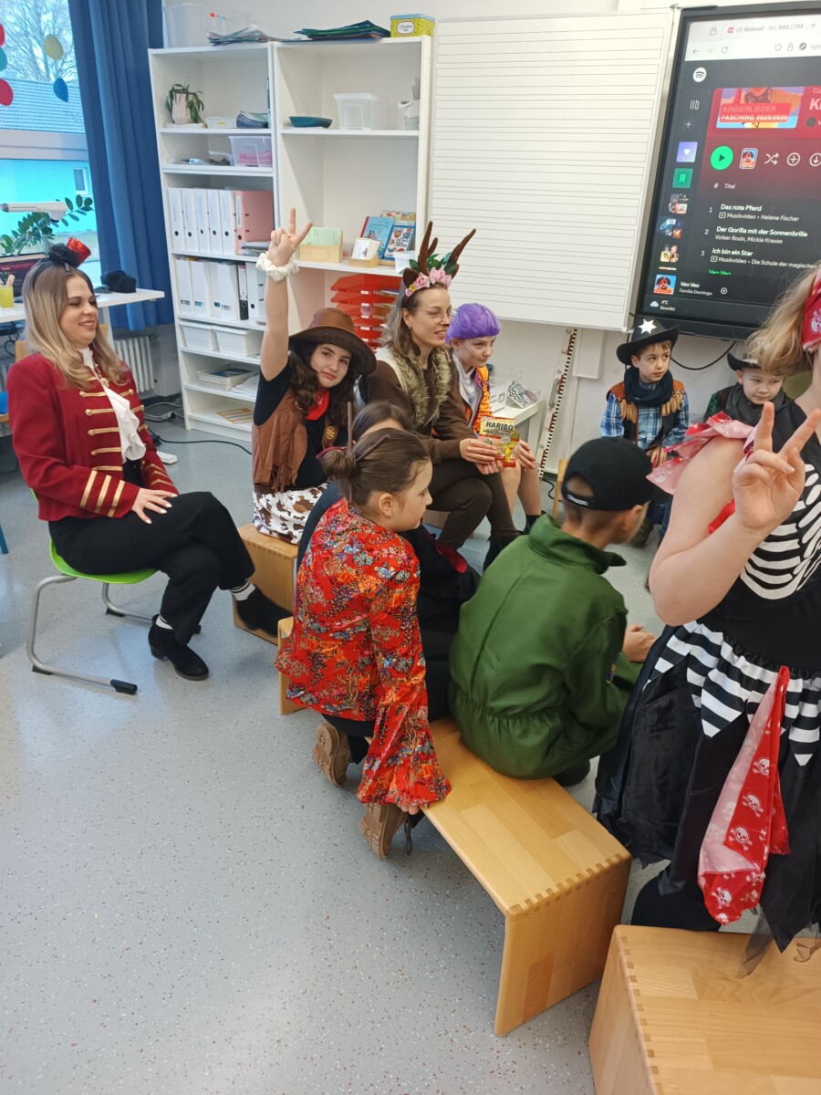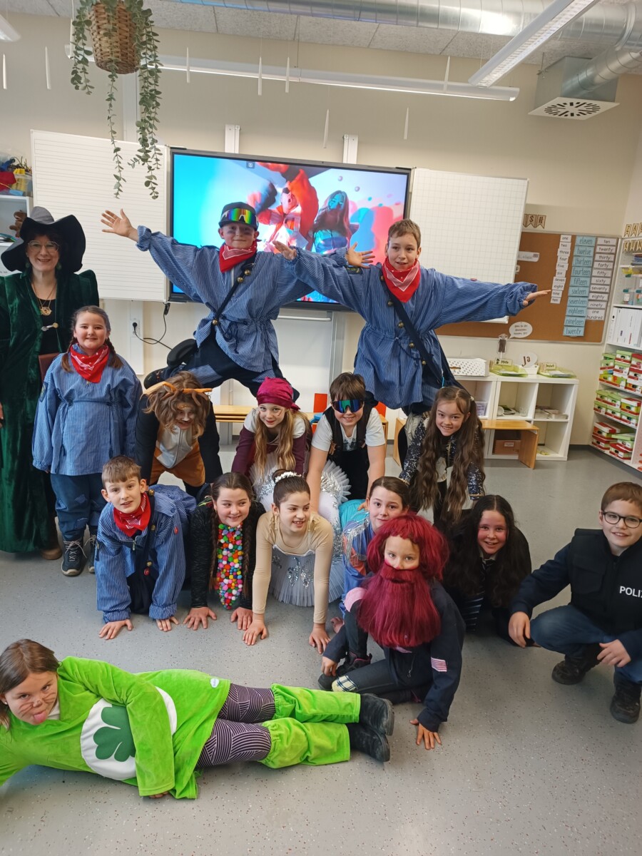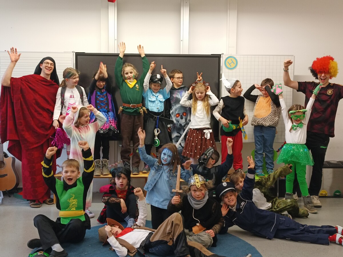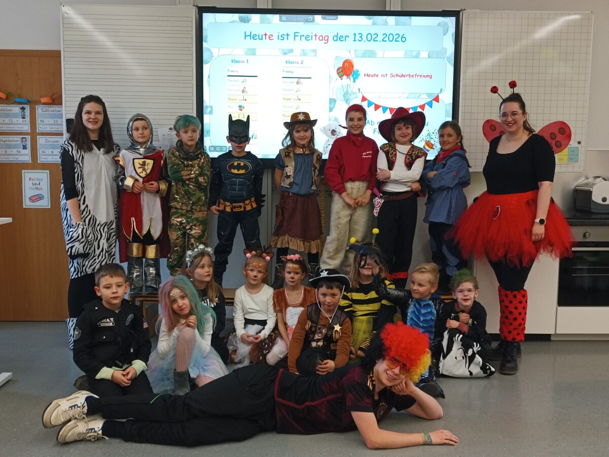 Am letzten Schultag vor den Faschingsferien herrschte wie immer Ausnahmezustand an der Wunderbuch-Grundschule. Die Kinder, die Lehrerinnen und Lehrer kamen bunt verkleidet und feierten bei verschiedenen Spielen in ihren Klassenzimmern Fasching. Dieses Jahr haben uns einige Mitglieder der Narrenzunft „Schäf“ ihr Häs vorgestellt. Im Anschluss kamen die restlichen Narren zur Schülerbefreiung. In der Albhalle gab es für die Kinder eine kleine Stärkung und lustige Spiele zum Mitmachen.